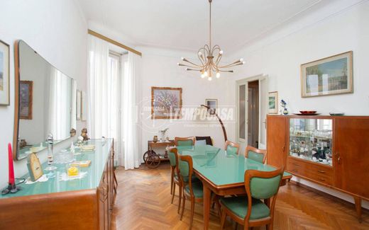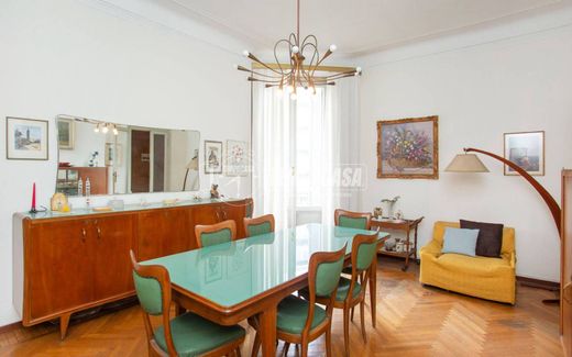 Ref: PO05TP - A few steps from Piazza Conciliazione and the Pagano Park, in a neighborhood that has always been well served by public transport, both on the surface and with the M1 Pagano and M1 Conciliazione metro lines, the TEMPOCASA Real Estate Agency offers for sale a splendid three-room apartment of approximately 140 square meters. Located on the fourth floor with a lift, in a 20th century building with full-time concierge service, it comprises an entrance hall onto a corridor, a living room, a large lounge, an eat-in kitchen, two double bedrooms, a closet, a large bathroom that can be easily divided, and two balconies.