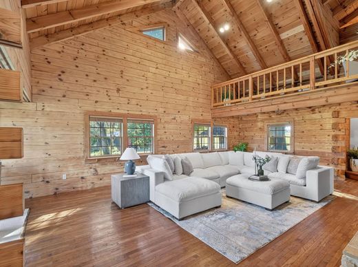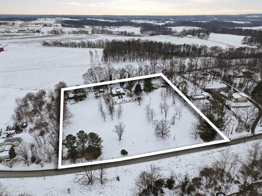 Experience timeless craftsmanship and modern comfort in this one of a kind, custom-built log cabin estate. An exceptional property that includes three separate parcels totaling four plus acres--the main homesite, a parcel with the above-ground pool and entertainment deck, and another parcel with a 36 ft x 60 ft horse barn featuring four stalls, tack room, wash pit, office, storage, and loft. Together, these parcels create a private retreat that blends rustic charm with luxurious living. Constructed from solid white pine D-logs with no 2x framing or siding, this true log home offers a warm and inviting atmosphere with structural post-and-beam construction throughout. Inside, gleaming hardwood floors, cathedral ceilings, and exposed beams frame spacious living areas designed for both comfort and entertaining. The great room impresses with a 16-foot-wide stone fireplace, twin balconies, and expansive windows that fill the space with natural light. The chef’s kitchen boasts granite counters, a gas cooktop, double ovens, custom oak and hickory cabinetry, a large island with custom seating, and a walk-in pantry. Enjoy scenic views in the bright dining area that overlooks manicured landscaping and countryside views, or enjoy a more intimate meal in the enclosed stone breakfast nook. The first-floor bedroom and full bath with clawfoot soaking tub provide flexibility for guests or main-level living. Upstairs, the primary suite is a true retreat with cathedral ceilings, a stone gas/wood fireplace, private screened balcony, large walk-in closet, and a spa-inspired primary bath featuring a four-person hot tub, glass shower, clawfoot soaking tub, skylights, and double vanity. An additional bedroom plus ensuite bonus room with cathedral ceilings and ample closet space complete the upper level. The fully finished basement offers over 2,000 additional square feet of versatile living space, including a recreation room with a regulation pool table, an exercise area, a large bedroom suite with full bath, a laundry room with washer/dryer hookup, mud room with drain and shower valve, office and bonus recreation space. Durable epoxy-coated floors and pine wainscoting provide both beauty and function. Enjoy panoramic country views from the two covered porches (8 ft x20 ft and 8 ft x40 ft), or relax by the 30-foot round swimming pool with multi-level decking, new pump, and filter system. Landscaped grounds include tiered flower beds, mature shade trees, and a three-tier goldfish pond with cascading waterfalls. A slate patio with open-air firepit, swing seating, and picnic area enhances the outdoor living experience. The home’s exterior has been freshly sealed (2025), and the roof was replaced with architectural shingles in June 2025. Additional features include an electrolux central vacuum on all three levels, central air, oil furnace, and outdoor wood stoker furnace for efficiency, 125-ft well with 32 GPM submersible pump, fireplaces feature heat-a-lators for enhanced warmth, ample parking and beautiful countryside surroundings. This remarkable property combines true log home craftsmanship with modern updates and outdoor amenities rarely found together. With three separately deeded parcels—including the pool and barn lots—this estate offers endless flexibility for living, entertaining, or future expansion. Schedule your private showing today and discover the peace, space, and elevated lifestyle this log home estate offers.