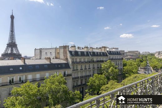 Paris 16th - In the heart of the prized Iena district, on the 5th and top floor by elevator of an early 20th century building of the highest standing, this elegant 333 m2 reception apartment boasts an exceptional view of the Eiffel Tower and numerous Parisian monuments.