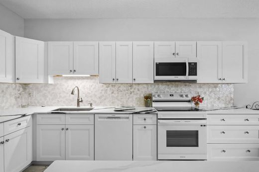 Boca's best in Boca Pointe! Spacious town home with garage in ideal location in community, near community pool but away from busy streets and noise. Gorgeous updated kitchen with eat in area, bar/island, light bright and tons of storage. Large open living space with double sliders to your private very large screened in patio with tropical foliage. First floor has a half bath and large under stair storage. Entire first floor with beautiful light laminate flooring. Upstairs has all tile floors with very large primary suite. Huge closet! Separate laundry room with new washer and dryer. May rent immediately(4 times per year) and membership to club not mandatory but available. 24 hour Manned gate. Great schools! All measurements are approximate.