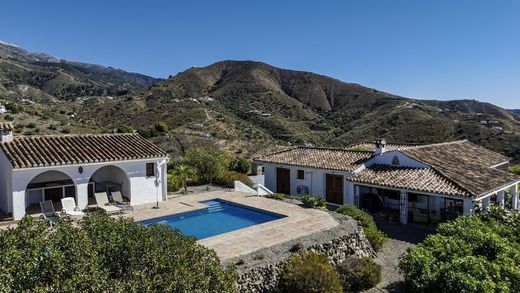 EXCLUSIVE: Finca Jacaranda is a beautifully built, high-quality rural villa offering complete privacy and panoramic views. The property sits on a generous 5,000 m2 plot surrounded by olive, almond, and fruit trees, with views stretching across Lake Viñuela, Mount Maroma, and the Mediterranean beyond. Built on a single level, the home features four spacious en-suite bedrooms, each with its own independent access from a charming central courtyard. The open-plan living area is bright and welcoming, with high beamed ceilings, rustic stonework, and a feature wood-burning stove. The fully equipped kitchen includes granite countertops, a central island, and integrated appliances, blending modern convenience with traditional style.High-quality finishes are evident throughout, including double glazing with shutters, underfloor heating, and air conditioning in the bedrooms. Outside, the property offers everything needed for relaxed Mediterranean living: a beautiful 12-meter pool (2.5 m deep at one end) with safety ledge, a fully equipped outdoor kitchen and barbecue area, and multiple terraces with 360° views. There’s also a garage, storage room, and a log store. Water is well managed via a large 40,000-liter underground deposit, plus an additional 1,000-liter reserve tank.The property combines rustic Andalusian charm with modern comfort, making it ideal as a permanent residence, holiday home, or boutique B&B.