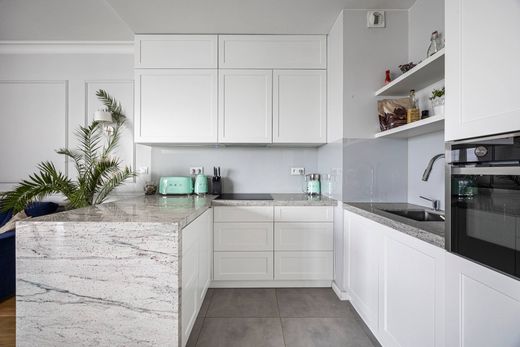 Artistic Żoliborz This apartment perfectly balances modern design with everyday comfort. A thoughtfully arranged space, where light, materials, and proportions come together to create an atmosphere of calm and sophistication. Style & Finishes The interiors have been finished with timeless elegance and attention to detail. Natural oak floors, a custom-built kitchen, exposed brick accents, and decorative mouldings add both warmth and character. Every element has been carefully selected to create a cohesive, inviting home — fully ready to move in. Layout Situated on the third floor , the apartment offers a practical and comfortable layout: a bright living room with an open-plan kitchen, two bedrooms (one currently serving as the master, the other as a guest room or study), a bathroom with a bathtub, a spacious balcony overlooking a beautifully maintained green patio. The arrangement ensures functionality while preserving a sense of privacy and harmony. For whom? Perfect for a couple or a small family (2+1) who value quality craftsmanship, thoughtful design, and a location with authentic character. Surroundings Żoliborz Artystyczny is one of Warsaw’s most sought-after districts – vibrant yet peaceful, full of charm, greenery, and a creative spirit. In the immediate area, you’ll find grocery stores (ALDI, Lidl, Biedronka), delicatessens with organic products, local restaurants, and cozy cafés. There are also schools, preschools, and language centers nearby. Westfield Arkadia shopping mall is just a 15-minute walk away. Accessibility & Transport The location guarantees excellent connections with the rest of the city: around 15 minutes by car to the city center, about 30 minutes by public transport , quick bus routes to Metro Dworzec Gdański and Plac Wilsona stations. Ideal for those who appreciate convenience and efficient commuting options. Parking & Additional Features The property includes two parking spaces in the underground garage , located conveniently near the entrance, as well as a motorbike space . Additional price: PLN 150,000. A home filled with light, balance, and elegance – ready to welcome its new owners. Designed for those who value aesthetics as much as comfort, and who wish to live in a place with its own personality and rhythm. Come see it – it might just feel like home.