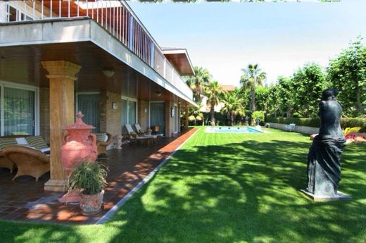 Luxury English-Style Villa with Private Pool, Very Close to the Sea and Just 15 Minutes from Barcelona~~Majestic English-style villa in the heart of Tiana, one of the most sought-after corners of the Maresme region, just 15 minutes from downtown Barcelona.~~With an imposing 72-meter façade and set on a plot of over 1,070 m2, this property is not just a residence; it is a statement of elegance, privacy, and sophistication. Surrounded by majestic, century-old trees and impeccably manicured gardens, it reveals a unique living experience, where classic luxury meets contemporary functionality, with five floors connected by elevator and stairs.~~As you cross the threshold, a spacious entrance welcomes you with the warm nobility of the English style: coffered ceilings, custom-carved woods, and details that tell stories. The living area displays its maximum splendor: a large living room with a white marble fireplace, a regal-style dining room, and large windows that flood every corner with light, connecting the interior with the harmony of the garden.~~The kitchen, featuring a breakfast nook style, combines fine materials—veined marble countertops, solid woodwork, and natural stone floors—and a functional design with a central island, a separate pantry, and direct access to a charming breakfast area with a fireplace, perfect for more intimate gatherings.~~The perimeter porch embraces the house and leads to a true oasis: a large pool with a sculptural fountain, an integrated summer bar, and multiple lounge areas that invite you to enjoy every season outdoors.~~Upstairs, the sleeping area houses five exclusive suites, each with a private bathroom, dressing room, and living room. Three of them enjoy panoramic views that reach the Mediterranean Sea, offering picture-perfect sunrises and dreamy nights.~~The attic, converted into an English lounge with a cocktail bar, exposed beams, and warm finishes, offers an ideal retreat...~~In compliance with Law 3/2017 of February 13, 2018, of the Civil Code of Catalonia, which approves the Consumer Information Regulations for the sale and rental of housing, the client is informed that notary fees, registration fees, applicable taxes (Property Transfer Tax or VAT + Stamp Duty), and other expenses inherent to the sale are not included in the price.~~