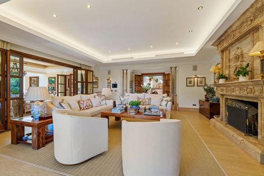 This outstanding Andalusian-style villa is presented in excellent condition and occupies a privileged position in Las Lomas del Marbella Club, at the very heart of Marbella`s prestigiou Golden Mile. Surrounded by 20,000 m2 of lush green forest, the property offers unrivalled privacy and tranquillity, a rare feature for such a central location. Its proximity to the renowned Puente Romano Hotel, local amenities, the beach, and highly regarded schools ensures a lifestyle of convenience and exclusivity. The villa, set on a generous 1,811 m2 plot, boasts an impressive built area of 712 m2 with 133 m2 of terraces. Comprising six spacious bedrooms, seven bathrooms, and two guest toilets, the property is designed for both family living and entertaining. The master bedroom is particularly noteworthy for its ample proportions. The residence further benefits from a separate apartment, ideal for guests or staff, and a basement level that includes a cinema room, wine cellar, games room, gym, and office. Outdoor living is a highlight, with beautifully landscaped private gardens, a heated saltwater swimming pool, and panoramic views encompassing the sea, mountains, and countryside. The superb outdoor chiringuito features a fully equipped kitchen, barbecue, sound system, and an outdoor living room—perfect for year-round entertaining. A carport provides secure parking for three vehicles, and the property is enhanced by double glazing, underfloor heating throughout, air conditioning, a smart home system, and solar panels for energy efficiency. Security and comfort are paramount, with amenities such as a security entrance, surveillance cameras, alarm system, video entrance, and automatic irrigation. Additional features include a utility room, laundry, storage, fitted wardrobes, guest room, water tank, covered and private terraces, and optional furniture. The villa`s classic Andalusian charm is complemented by the highest standards of modern luxury, making it a truly exceptional offering under sole agency.