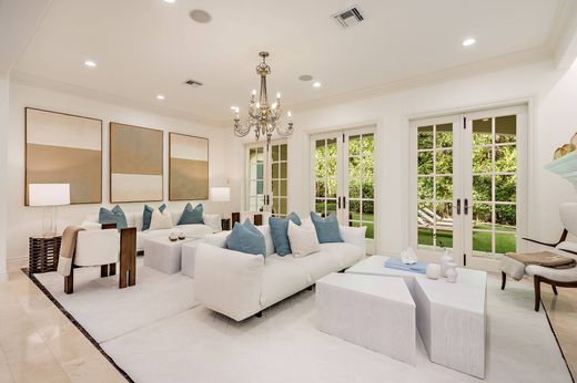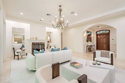 Located on the desirable North End, this residence offers 5,222 +/- total square feet with 5 bedrooms, 6 and a half bathrooms, a pool, covered loggia, and two-car garage. A formal entry opens to the living room with a fireplace and French doors leading to the loggia and pool beyond. The spacious eat-in kitchen features a large center island with gas range, two sinks, and a breakfast area that opens to the family room and pool terrace. The formal dining room sits just off the kitchen, ideal for everyday living and entertaining. A library or optional bedroom, cabana bath, and the primary suite complete the main level. The primary suite includes dual walk-in closets, dual vanities, and direct access to the pool. Upstairs, three guest bedrooms each have en suite baths and walk-in closets. Two open to a shared balcony overlooking the pool, while the third offers a private balcony.
