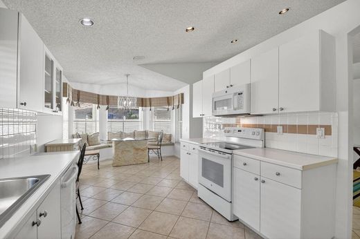 Move-in ready. NEW ROOF. Many Anderson hurricane-impact windows and doors. Accordions. Special leaf guard gutter system, New A/C. New blinds. Pristine white kitchen with newer appliances, bay window and banquette seating. Spacious and bright home located in a manicured community with meandering paths and lakes.. Beautifully renovated clubhouse and cafe. Fabulous lifestyle with pickleball, tennis, pools, bocce, billiards etc. Also, clubs, life long learning, and live entertainment. This warm, friendly community is 5 min. from shopping, 20 min. to the beach.
