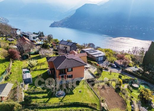 The detached villa with large garden in Cernobbio is surrounded by greenery and views of the beautiful surrounding hills.