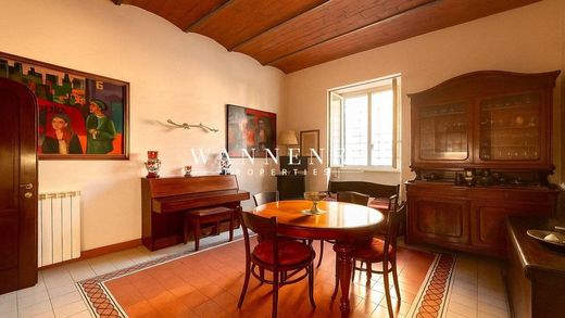 Situated on the raised ground floor of a meticulously preserved late-19th-century building, the apartment welcomes with 3-meter high ceilings, vaulted architectural details, elegant warm finishes, and a dual aspect overlooking both the street and a quiet private courtyard, ensuring privacy and a peaceful retreat in the heart of the Eternal City.