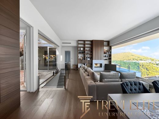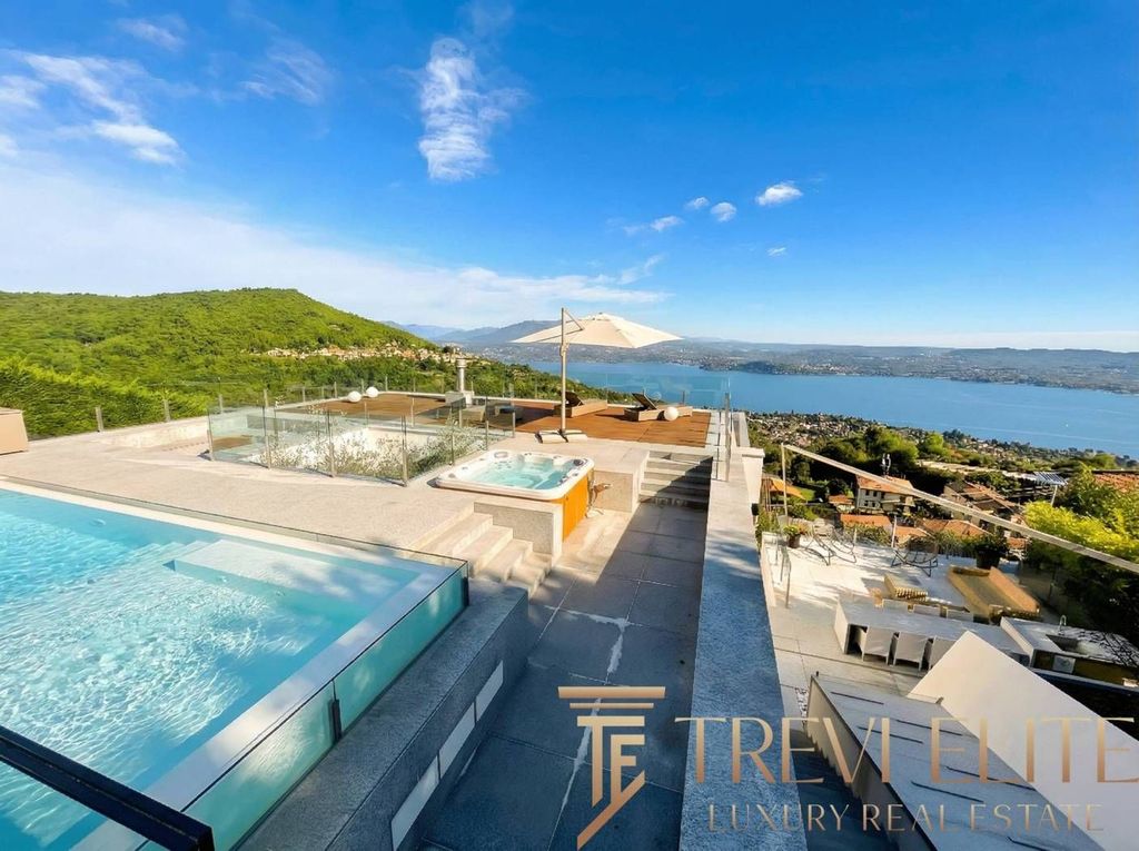 This magnificent modern villa is located in the prestigious hills of Massino Visconti, offering an exclusive living experience with a panoramic 180-degree view of the majestic Lake Maggiore. Designed to blend effortlessly with the surrounding landscape, the villa features a modern architectural style that focuses on clean lines and expansive glass facades. These design elements invite abundant natural light, creating harmonious connections between the indoor spaces and the stunning outdoor scenery. Every corner of this property is crafted to ensure privacy and comfort, making it a perfect retreat for those seeking tranquility while maintaining close access to the vibrant Italian lifestyle.