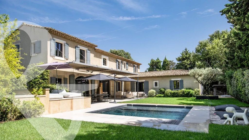 This spacious, 5-bedroom property is a subtle and tasteful blend of Provencal architectural style and sumptuous, modern comforts. Discreetly set and offering 280 m² of living space spread over 2 levels with quality features and finishes throughout, the light and bright accommodation comprises, on the ground floor, a succession of living rooms that include a dining room, kitchen and sitting room, together totalling 120m². Also on this level is a large en-suite bedroom of around 60 m². Upstairs, there is a master suite with bath and shower and 3 further bedrooms that share a well-appointed family shower room. Outside, the garden of 1070 m² is an invitation to relax with a large, shaded terrace, a 5x5m heated swimming pool, a pétanque pitch and an ornamental pond: completing the property there is a car port and a single garage. Well located, exceptionally presented and showcasing spacious rooms and contemporary design this property is, without doubt, outstanding.