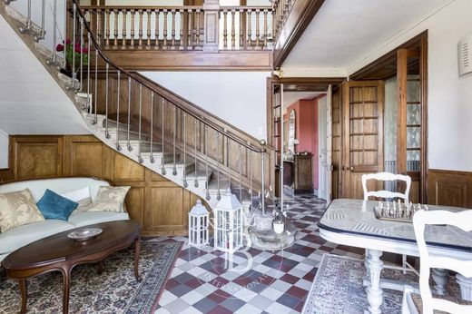 With nearly 480 m² of living space, the house features generous volumes and beautiful period elements: French ceilings, original parquet floors, terracotta tiles, and fireplaces.