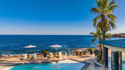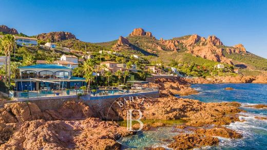 Anthéor: a unique location for this waterfront villa, set on red rocks at the end of a dead-end street in a gated estate on the Corniche d'Or between Cannes and Saint-Tropez.