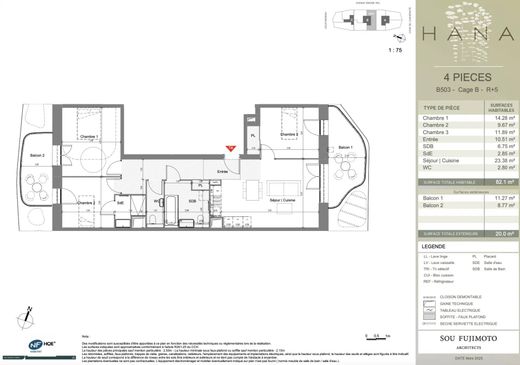 A luxury residence designed by renowned Japanese architect Sou Fujimoto, rising 17 stories and located in the heart of the Joia eco-district, Nice's future business center. This dual-aspect apartment is on the 5th floor (accessible by elevator). It comprises: an entrance hall, a living room with an open-plan fitted and equipped kitchen, a 11.03 m² terrace, three bedrooms, a bathroom with toilet, a shower room, a separate toilet, a second 8.74 m² terrace, and an underground parking space. Heating and air conditioning are provided by a reversible geothermal system. Monthly charges: €197. Estimated delivery: early January 2026. A gym and large shared terrace are located on the 9th floor. The Méridia tram stop is right outside the building, and Nice Airport is just four stops away. The International School of Nice is a five-minute walk.