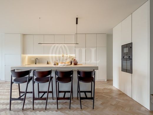 This apartment, originally a 5-bedroom, was transformed into a functional 4-bedroom with complete interior renovation, including electrical installation and plumbing. The layout prioritises the social area to the left of the entrance, while the private area features a corridor filled with built-in wardrobes. The property has aluminium window frames with double glazing, heat pump, electric shutters and air conditioning.