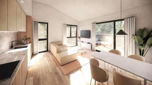 The property, with a surface area of 81 m² and south orientation, offers excellent natural light throughout the day. It is distributed into a spacious living-dining room with an open kitchen, perfectly integrated into the space, two double bedrooms, and two full bathrooms with modern finishes. From the living room, there is access to a private terrace of 4.6 m², ideal for enjoying mountain views and the natural surroundings.