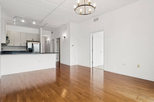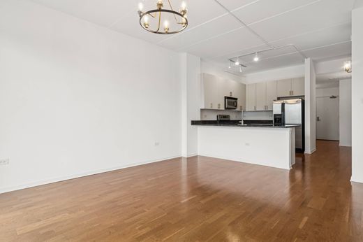 Welcome to The Larrabee! A spacious 2 bed/2 bath gem of a unit located in River North. Enjoy the most unique and unobstructed skyline views from your charming balcony! Unit has been fully and freshly painted, new hardware throughout, high ceilings, updated kitchen, featuring 42" cabinets, brand new microwave, a dishwasher, new light fixtures, in-unit washer/dryer, ample closet space, and a balcony. Spacious primary suite also features customized walk-in closet, double vanity, and soaking tub. Large second bedroom with organized closet, perfectly appointed for guests or a work from home office. Additional storage locker included. Prime deeded parking spot is available for purchase at 25K, conveniently located in the attached heated garage. Simply walk across the street to get to the riverwalk and rent a kayak or a boat for the afternoon. Just steps from parks, a dog park, Starbucks, Whole Foods, Mariano's, Target, the best restaurants/nightlife, the "L," and highway access.
