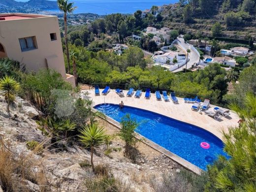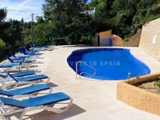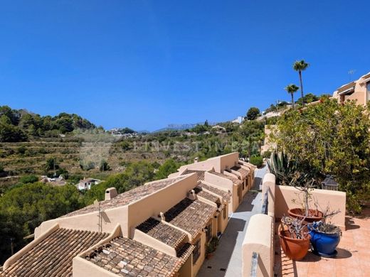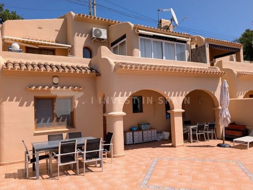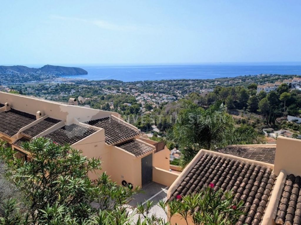 This spacious and luminous property offers remarkable views and sun all day. The property is distributed over two floors and is only a short walk to the superb community pool and a short drive to the supermarkets, beach and town centre. The principal entrance is only a short flat walk from the allocated parking space. You enter into a bright hallway and then straight into the spaciious living area, to the left is a modern, open kitchen with gloss white units and Baltic Brown granite worktops which includes all of the appliances necessary. To the right is a spacious living area which leads directly to a glazed naya with amazing views that is used as a dining room. Outside the naya there is an open terrace with awnings big enough to relax, barbecue and dine alfresco. To the right in the entrance hall you will find the master bedroom, a spacious room with built-in wardrobes, glazed doors leading out to the terrace and an en-suite bathroom including bath with shower attachment and a vanity unit. Down the well lit staircase in the hallway you reach the lower floor and a hallway leading to the outside terrace. On the right is a double bedroom with built-in wardrobes and on the left is a house shower room, a linen cupboard and another double bedroom with built-in wardrobes. Further into the back of the villa you find a large multi-purpose room, perfect for kids or for adults! Off this room is a small hallway including a laundry area, a spacious shower room and a large bedroom with two dressing rooms. Outside the lower floor is a huge (96m2 +/-) open terrace with an open naya and wonderful views over Moraira and to the sea.