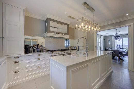 The home is appointed with top-quality materials and high-end amenities, and is surrounded by a beautifully maintained park of around 3,245 m². Mature trees and lush Mediterranean vegetation create an enchanting setting for relaxation and outdoor living. The exterior features a large heated swimming pool, a fully fitted summer kitchen, elegant garden lounges, and an array of sunlit and shaded terraces perfect for entertaining. A tennis court and a garage for two vehicles further enhance the exceptional appeal of this property.