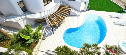 In Altea with breathtaking views of the Sea, the Mountains and the Bay of Altea, On a flat corner plot, Magnificent villa of 418 m² living space, completely renovated in 2025 offering a harmonious blend of comfort and elegance. Modern American kitchen fully fitted and equipped with quality appliances, which opens onto a spacious dining room, ideal for meals with family or friends. The adjacent living room, bathed in light, is tastefully decorated and creates a warm atmosphere. 4 comfortable bedrooms with dressing room, 4 bathrooms, 'guest' toilet, . . . Solarium - Partially covered terrace with a shaded dining area, ideal for outdoor dining and relaxation. Beautiful swimming pool with sea view Garage + indoor parking and private garden. A carefully designed villa with quality renovations that combines modern comfort with the charm of Mediterranean living, offering a wonderful opportunity to own your own villa in a highly sought-after location.