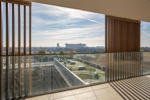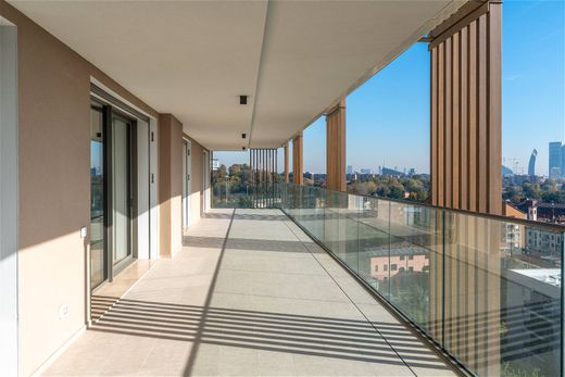 Located on the ninth floor of the new Hippodrhome residential complex, this spacious apartment impresses from the moment you enter, with a large living area and a 67 sqm panoramic terrace overlooking the racetrack, the Meazza Stadium, and the Milan skyline. The terrace, seamlessly connected to the interior spaces, offers an ideal setting for both relaxation and social gatherings.