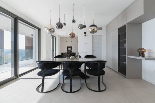 High-end finishes give the residence a contemporary and sophisticated character, highlighting both architecture and furnishings. The property also includes a double garage, a cellar, and a condominium gym.