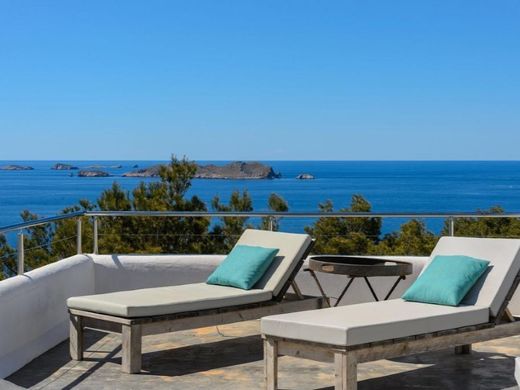 In the exclusive southwest of Ibiza, in the prestigious area of Cala Moli, you will find Villa Sunset, a stunning bohemian-style property that combines Mediterranean luxury, serenity and the best sunset views on the island. With a price tag of €2.9 million and an active tourist license (ET-0277-E), this villa represents an exceptional opportunity both for investment and to be enjoyed as a private residence.