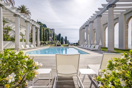 Discover this rare and unique apartment-villa, located directly on the seafront, with direct access to the beach on foot or via a private funicular. This sumptuous property of nearly 500 m² boasts a vast 170 m² terrace and a 60 m² private swimming pool, offering complete privacy and a true haven of peace with breathtaking views of the Mediterranean. Ideally nestled within the prestigious luxury residence, Palais Maeterlink, in Mont Boron, Nice, you will enjoy lush gardens and a superb swimming pool with elegant sun loungers. The residence is distinguished by its unparalleled comfort and high-end services, including an on-site concierge service available 24/7, ensuring optimal security for residents. Upon entering, the expansive 130 sq m living area is immediately striking, featuring a triple-height cathedral ceiling that floods the space with natural light and offers spectacular sea views. The apartment comprises seven bedrooms, all en suite, including two superb master suites. Additional amenities include a wine cellar, a cinema room, a utility room, and further potential for customization to suit your needs. A double garage, a parking space, and a cellar are included for your convenience. This exceptional property offers all the advantages of a villa with the peace of mind (security, maintenance, etc.) provided by a gated community and its services, just 5 minutes from Nice city center, 15 minutes from the airport, and 20 minutes from the Principality of Monaco. Full details available upon request.
