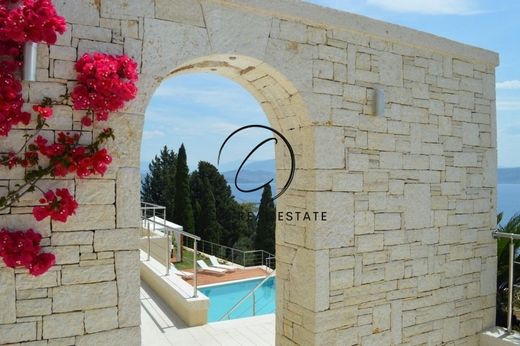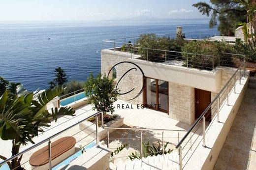 The property comprises of two contemporary villas that have been constructed to be either used separately, or by using the connecting doors, it is immediately transformed into a single estate with a primary residence and connected guest house/secondary residence. Access is via a fully secured private gated road that leads down to a covered parking area and the main property entrances. There are wonderful established gardens with a fully automatic underground irrigation system, spacious paved patios on two levels as well as lawns and beautiful stone seating areas. Each villa has its own private heated swimming pool with decked sunbathing areas, covered BBQ / entertainment area, courtyard with fire pits and their sea facing position ensure they take advantage of the stunning sea views.