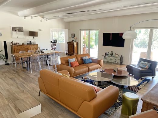The gentle charm of the South, in Nîmes, in a sought-after neighborhood and a very quiet setting, with no overlooking neighbors, the Corinne Ponce real estate agency presents this superb 6-room villa of over 200 m2 of living space on a beautiful landscaped plot of approximately 2,700 m2 with a swimming pool and pool house. The villa opens onto a very attractive living room with a wood-burning stove and sliding glass doors leading to a spacious terrace and lovely views of the surrounding countryside. A very large, fully equipped, high-end kitchen and a pantry complete the living area. Two sleeping areas offer four bedrooms, including two master suites, and an office space. Outside, enjoy fully landscaped grounds, a large swimming pool, and a dry-stone pool house. Particular attention has been paid to the features of this well-designed and thoughtfully planned home! A truly wonderful place to live!