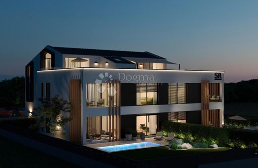 PROMOTIONAL PRICE for purchase during the construction phase! High-quality building with a total of 6 luxury apartments on a large plot near the sea. Excellent ground floor apartment with southwest orientation with two bedrooms, one of which has an 'en suite' bathroom. The third room of 9 m² is planned as a study but can also be used as a third bedroom. In addition, another large bathroom, storage room and a large open-plan kitchen, dining room and living room. In addition, a private garden of 268 m² with access from the asphalt road. The price also includes a 21 m² swimming pool with salt electrolysis and terrazzo coating. The apartment has one outdoor parking space and one parking space in the garage of 21.90 m² and a storage room of 5.40 m². The building and all apartments are built in such a way that they meet energy class A, in accordance with the Technical Regulations on the Rational Use of Energy and Thermal Protection in Buildings. Vertical communication within the building is ensured by a spacious staircase and elevator, the hallways are illuminated with natural light and equipped with evacuation lighting. The apartments are equipped with separate heating systems (heat pumps via underfloor heating in all rooms) and an inverter air conditioning system (cooling and heating via wall or parapet air conditioning units) with the possibility of being controlled via a mobile application. All shading is electrically operated with wind protection. Floor surfaces are covered with ceramic tiles or 1st class parquet. The entrance door is burglar-proof and fire-proof. Alarm system with smoke detector and internal and external siren. Video surveillance of the yard and a bell with a video intercom. The courtyard and garage doors are remotely controlled. The price includes 25% VAT, payment in stages according to the completed construction phases. The buyer is exempt from paying the 3% real estate transfer tax. For all additional information and/or viewing, please contact us with confidence at the following mobile number: Selma Bašić selma.basic@dogma-nekretnine.com Licensed agent Mobile 098 965 8170 Antonija Perhat antonija.perhat@dogma-nekretnine.com Brokerage assistant Mobile 099 7033 714