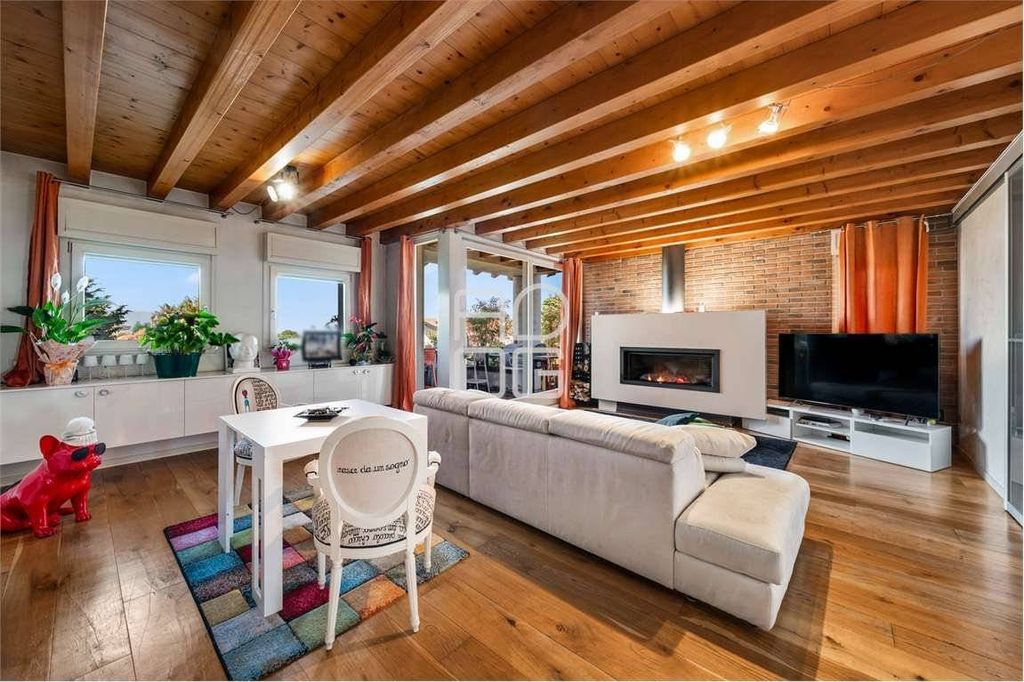 A hallway leads to the sleeping area, which includes two bedrooms, a laundry room, a bathroom and a master suite with private facilities, perfect for those seeking privacy and convenience. High-quality finishes and features — parquet flooring throughout, underfloor heating, air conditioning and an alarm system — confirm a refined living standard.