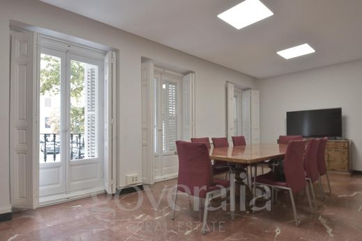 This unfurnished office is at 28004, Madrid, Madrid, at Justicia, on floor 1. It is a office that has 250 m2 and has 8 rooms and 2 bathrooms.~~It has equipped kitchen, stairs, toilet, ascensor, cocina amueblada, centrally located, alto standing, outside, aire acondicionado, integrated kitchen, terrace, luminous, diáfano, good condition, doorman, extinguisher, service bedroom, parquet floor, calefacción central and south orientated.