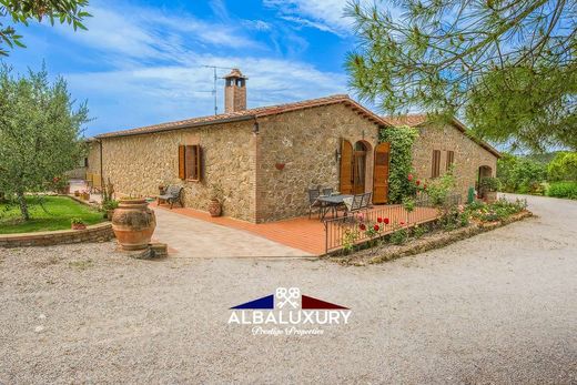 There are outdoor areas equipped with tables and chairs, a wood-burning oven and barbecue for outdoor dining, and a large swimming pool perfectly integrated into the surrounding countryside and with a view of the Crete and Pienza.