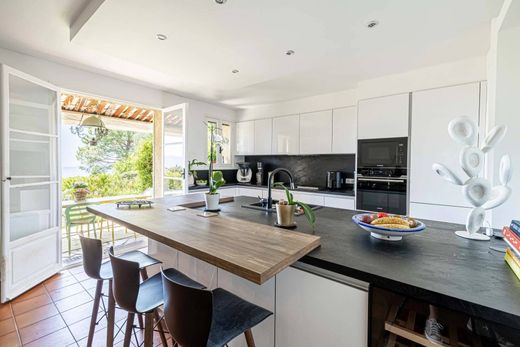 In a private and intimate estate of 6 properties, superb Provencal villa of 295 m² (with possibility of extension) on a flat, wooded 2,500 m² plot, in a dominant position with unobstructed view of the sea and hills.