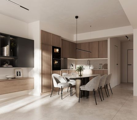 On the 6th floor, the open-plan living and kitchen area creates a bright, inviting space, complemented by a bedroom and a bathroom designed for comfort and functionality. The 7th floor opens to two additional bedrooms, 16sqm and 13.5sqm, as well as a second bathroom with natural ventilation, satisfying all demands of modern life.