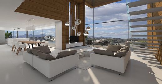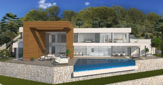 Modern style that I started its construction in March 2018. It is a modern and bright property. The property includes 4 bedrooms and 5 bathrooms, pool and elevator. It has a plot of 1,044m2 and a constructed area of 340m2. The location is relatively close to the town of Moraira (approx 4km), in La Arnella. You will have spectacular views of the mountains, (Montgo, Bernia and Ifach). Every day of the beautiful sunset, and of the Moraira illuminated at night, this house is perfect. This villa is for the price of € 1,395,000 + taxes.