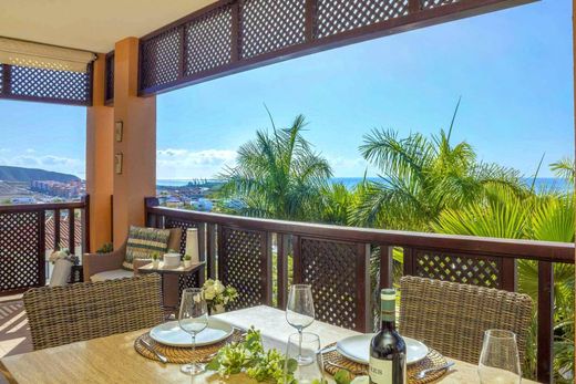 Location:~~The apartment has wheelchair-friendly access and is located on the mid floor of block 1. Elevator from the garage basement. This part of the complex is the most popular and has the shortest way down to the sea and the center. Sea view from the terrace, living room and bedrooms.~~About 5-10 min. walk to the center of Arguineguín where you will find all kinds of shops, restaurants, cafes, medical center, pharmacy, town hall, etc. Several beautiful beaches within walking distance, including Anfi del Mar with white, Caribbean-inspired shell sand. Mountain trails nearby with easy access. Very good location in a quiet area without through traffic.~~Summary:~~Open living room and kitchen, 2 bedrooms (ensuite), 2 bathrooms, toilet and spacious terrace.~~Garage space and storage room in the basement of 12 m2 and 9.39 m2 (constructed surface) respectively must be purchased for an additional price of 20.000 euros.~~Desired takeover: Mid-February 2026.~~Content:~~Marble floors and natural white walls. Bright and elegant apartment. Gently used. Vents in exterior walls for extra air circulation. Downlights.~~Solid security door.~~2 double wardrobes in the hallway where a large hot water tank is located. Perfect for storing washing equipment, outerwear, etc. Shoe cabinet. Full-length mirror.~~Guest toilet on the right. Bathroom furniture with mirror above. Washing machine.~~The master bedroom is located straight in the hallway and is bright and spacious. French balcony doors provide good ventilation and light. Sea view. Window facing the terrace . The room is furnished with a double bed, bedside tables, integrated wardrobe and shelves. AC. Private bathroom with bathroom furniture, mirror and bathtub. Underfloor heating.~~Open living room and kitchen with 3 windows in the living room, patio doors and 1 window in the kitchen area. Large glass surfaces and south-facing direction make the apartment appear particularly bright. The view from inside is exotic palm trees, the Atlantic Ocean, beautiful buildings and the mountains to the east.~~The living room is furnished with a sofa bed, pouf, table, TV table and cupboard. AC.~~The spacious kitchen is U-shaped and offers all white goods from the quality brand Bosch; Fridge-freezer, oven, extractor fan, vitroceramic hob (4) and integrated dishwasher.~~Direct access to the fantastic terrace of 25 m2 with panoramic views from east to west. The view appears like a painting and the impressions are further enhanced from what you see from inside: Blue sea, green palm trees, impressive architecture and mountains in beautiful contrast with the sky. The terrace is roofed. Its south-facing direction nevertheless contributes to very good sun conditions. Furniture: Large dining group for 6 people in rattan style and two armchairs with footrest. Side table. The outer part of the AC is hidden in a recess of the terrace.~~Bedroom 2 is located adjacent to the living room and is currently furnished with a sofa bed, built-in wardrobe and shelf. Window. AC. Private bathroom ensuite. Furniture with mirror and a shower. Underfloor heating here too.~~The apartment is sold furnished. Exception: personal items and some decorative items belonging to the broker.~~Common facilities:~~Elevator from the garage to the property.~Heated swimming pool for children and adults.~Cameras on all entrances to the facility. Security service. Reception service.~Common costs include WIFI.~~The plan document may be inaccurate. Purchase costs not included in the price. These include a document fee of 6.5% of the purchase price for second-hand purchases, notary, registry and lawyer fees. On average about 8-10%. The buyer will receive an overview. The property is sold as is. We reserve the right to changes, errors and omissions regarding info provided about the property and that it may be withdrawn from the market without prior notice.