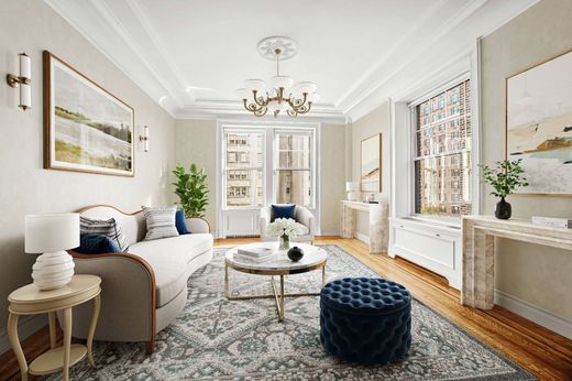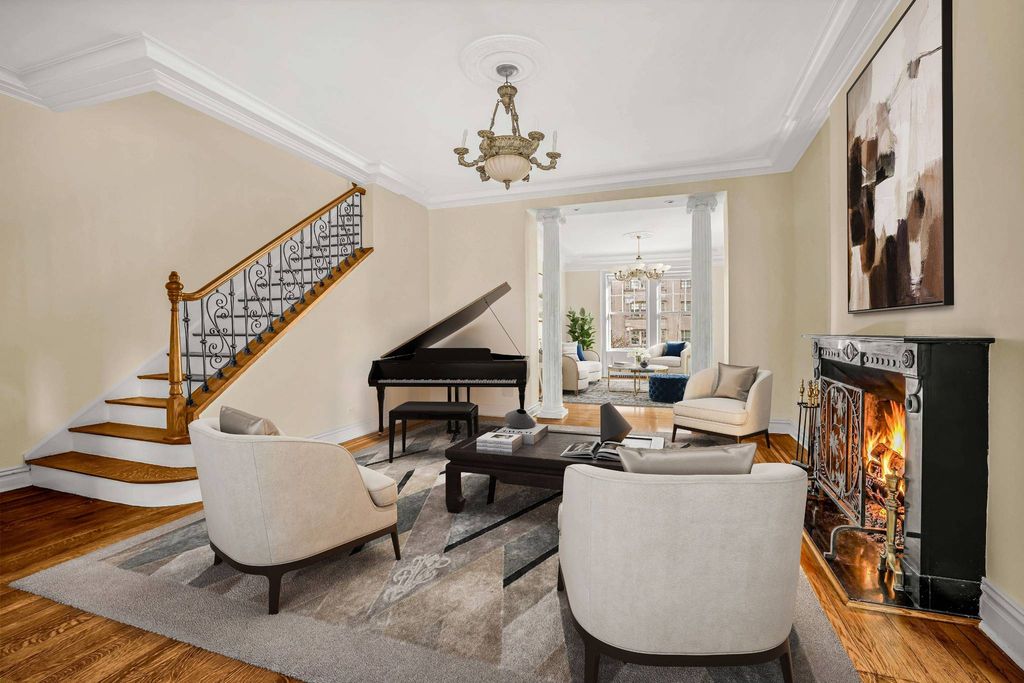 Perfectly situated on Park Avenue and East 76th Street, this crisp, classic and mostly original 9 into 8 room Duplex cooperative apartment is available for the first time in decades. The sprawling apartment offers an impressive suite of entertaining rooms, a large eat in Kitchen, as well as the flexibility of four Bedrooms. Distinguished by large windows, multiple corner exposures and a unique garden facing semi-circular bay window; the apartment is an absolute delight. A gracious Reception Room with wood burning fireplace centers the first level. To the East lies a corner living room and to the west a lovely dining room just off the Kitchen. The large and bright eat-in Kitchen adjoins the double Staff/office/guest Room full bath and Laundry. Up an expansive flight of stairs is a lovely corner Master Bedroom with an extremely large Bath. Two additional Bedrooms offer ample closet space and one more Bath. High ceilings, beautiful period moldings, hardwood floors, and classic architectural details are all part of this residence’s appeal and provide the ideal setting for elegant entertaining and comfortable living. 830 Park Avenue is a distinguished prewar cooperative perfectly situated on the Southwest corner of 76th Street, in the heart of the Upper East Side. 50% financing permitted and 2.5% flip tax payable by the purchaser. *Some Images are Virtually Staged