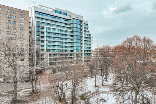 True luxury 1 Bedroom + Den condo with forever views of Lawrence Park Ravine. This efficient 710 square foot layout is filled with natural light and includes a large open concept kitchen and centre island complete with breakfast bar for island seating. The kitchen features abundant storage with shallow and deep pantries, Liebherr refrigerator/freezer with icemaker and cabinet fronts, Miele dishwasher with cabinet front, Miele smooth cooktop, Miele full-size oven, and Miele architecturally designed modern hood fan. The living and dining rooms are functionally laid out and large enough for full-size furnishings. Flooring throughout the living and bedroom areas is a premium oak hardwood. The bedroom is daylit and includes a large closet with built-in safe for valuables. The den provides space for a home office, small TV lounge, or room for a murphy bed to accommodate an overnight guest. There are two walkouts to a large balcony with gorgeous east and southeast views. The bathroom features Kohler premium fixtures/faucets, marble counter, and marble tile, including a tile fronted soaker tub. 3018 Yonge in Lawrence Park is ideal for young professionals or downsizers, offering excellent management, low fees, elegant lobby, huge party room, ground floor outdoor lounge with BBQ area, and luxurious rooftop amenities including a saltwater outdoor swimming pool, outdoor hot tub with fireplace, extensive outdoor seating areas with panoramic city views, and a well equipped gym with spa-like steam room. This building has ample visitor parking and is just steps from the TTC, local shops, cafes, and restaurants. One parking space and locker included. One of the best luxury buildings in the heart of Lawrence Park.