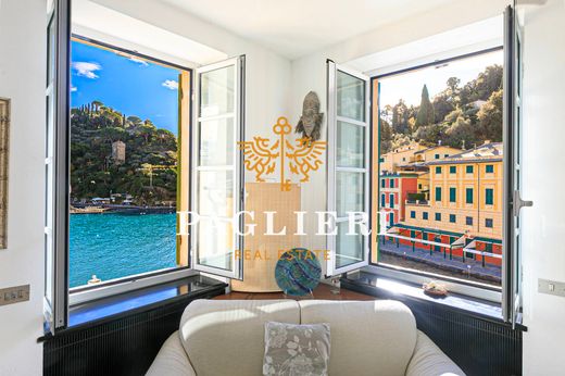 Paglieri Real Estate offers an exclusive, prestigious apartment overlooking Portofino's famous Piazzetta. This refined 85 sq m apartment is located in the most iconic and privileged spot in Portofino's Piazzetta. This property stands out as the brightest apartment in the entire Piazzetta, thanks to four large windows that embrace every angle of the scenery below, ensuring continuous natural light from morning until sunset. Every window offers a unique view of the Piazzetta, the lively marina, and the unmistakable Castello Brown, which elegantly dominates the promontory. The airy and elegant interiors fully enhance the property's extraordinary luminosity. The interior furnishings were designed by architect Gianfranco Frattini, who expertly reinterpreted the space, drawing inspiration from the materials and lines typical of nautical design, recalling the timeless elegance of vintage vessels. Making this offering even more rare is a private parking space, a true added value and almost impossible to find in Portofino. An exclusive and unrepeatable opportunity to experience the Piazzetta from a privileged perspective, in a one-of-a-kind apartment. Technical details: 85 sq m, third floor without elevator, APE dated 21/06/2022, energy class D EP 9860, ordinary administration costs €2,000 per year, cadastral category A/2, parking space for rent, air conditioning, independent heating, hot/cold air conditioning.