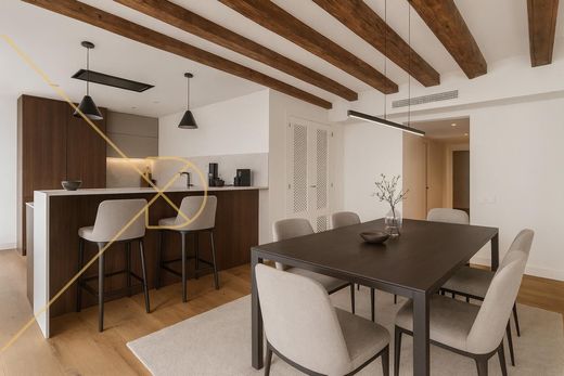 Incredible 172 m2 Penthouse on Mirallers Street~~At DCANO Real Estate, we are delighted to present this exclusive penthouse with a private terrace.~~Discover this stunning top-floor apartment located on one of the best streets in the heart of the city.~~With a total area of 172 m2 (131 m2 built + 41 m2 terrace), this renovated property stands out for its high ceilings and exposed wooden beams, adding warmth and elegance to the space.~~The jewel of the property is its spectacular 41 m2 private terrace, perfect for enjoying outdoor moments and open views.~~The spacious and bright living room features four exterior balconies, allowing abundant natural light throughout the day. The open-plan kitchen is fully equipped with integrated appliances (including a small wine fridge) and blends seamlessly into the social area.~The night area includes two large bedrooms, each with its own walk-in closet and en-suite bathroom, offering comfort and privacy. The master bedroom has a small exterior balcony facing Rosic Street, receiving lovely morning sun.~~There is also an architect’s proposal/project available to convert the apartment into a three-bedroom layout (this floor plan can be seen in the photos).~~The building, constructed in 1900, has an elevator, ensuring easy access to the top floor.~~The property can be sold furnished or unfurnished, depending on your needs.