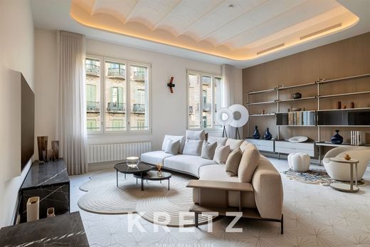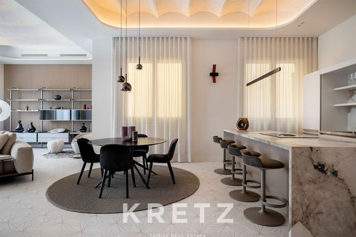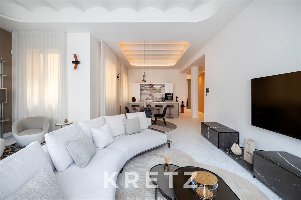 Eixample Dret, Barcelona. Set within a characteristic building of the area, fully refurbished inside, this 154 m² residence stands out for its sophisticated design inspired by the cosmopolitan essence of Manhattan. Premium materials and furnishings by brands such as Poliform elevate every room, creating a contemporary and refined atmosphere. The day area features an open-plan kitchen, dining room and living space, while the night area offers **three bedrooms in total**: two spacious double bedrooms, each with its own en-suite bathroom, plus an additional bedroom. The property also includes a guest toilet and a separate laundry area. The building offers exclusive amenities such as a swimming pool, sauna, massage room and a fully equipped gym. A high-end kitchen completes a home designed for those seeking comfort, style and luxury in one of the most desirable addresses in Eixample.
