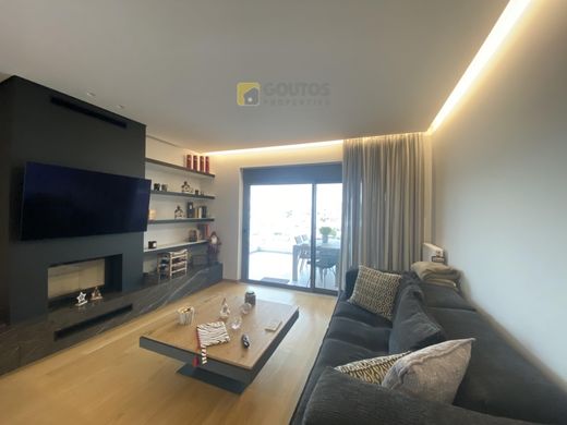 Apartment For sale, floor: 5th, in Alimos - Kalamaki. The Apartment is 86 sq.m.. It consists of: 2 bedrooms, 2 bathrooms, 1 kitchens, 1 living rooms and it also has 2 parkings (2 Underground). The property was built in 2021. Its heating is Personal with Natural gas, Heating per level, Air conditioning, Boiler are also available, it has Alluminum frames with Double glazed windows, the energy certificate is: A+ and its floors are Wooden. The property's status is: New development, Excellent condition, it is close to Transportation, Park, 400 Meters from seaside, it has Sea view. The Apartment is Painted, On Corner, Penthouse, With Facade, Bright, Airy, Ramp / Wheelchair access, Luxury and it also has the following unique features and advantages: Window Screens, Elevator, Electric Appliances, Storage, Garden, Security door, CCTV, Security alarm, Internet, Sattelite Receiver, Automatic watering, Grass, Trees, Pets allowed, Solar panels. Price: €680.000. Goutos Properties, contact phone: 2109715711, email: sales@goutos.gr, website: