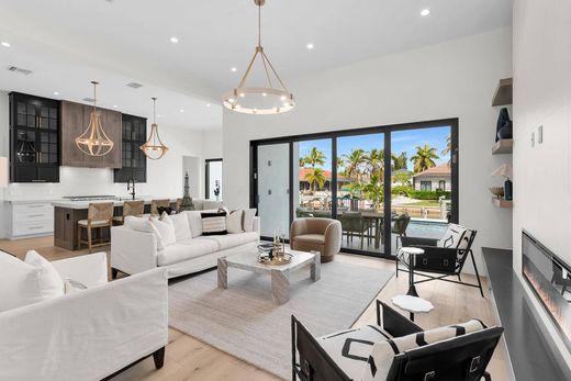 Future forward yet familiar, welcome to a new standard of luxury island life. This exquisite masterpiece offers six oversized bedrooms, 5.5 baths, pool, spa, dock with lifts for a boat and jetskis, three-car garage, a fireplace, outdoor kitchen and, of course, is elevator ready. With over 4,000 square feet of indoor living, there is space for plenty of friends and family to make memories that will last a lifetime. This thoughtful design allows for the absolute best indoor/outdoor living with walls of impact glass sliders. The location for this new construction home was carefully selected to provide unmatched convenience to the best the island has to offer. Whether it's a stroll to world-renowned beaches, boutique shopping or casual and fine dining just steps away, each day invites a new adventure. Prefer life on the water≠ Enjoy quick Gulf access from your private dock, complemented by expansive outdoor living spaces designed for relaxation and entertaining. Designed and built to the highest standards of quality and style, this timeless property is crafted to leave a lasting impression for decades to come. The Marco Island lifestyle awaits!