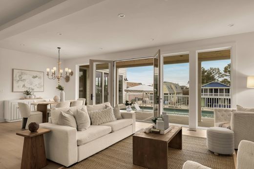 Merriam Webster defines the opportunity of a lifetime to be “of a chance or experience, such that it does not occur more than once in a person's life.” and one might argue that this residence is truly a once in a lifetime opportunity. 124 Layton is positioned mid block on a controlled cross-walk street which is a quick, and safe, jaunt to the serene beaches of South Bethany. Whether you are looking for the ocean sounds, the maritime enjoyment of jet ski's, boats, and kayaks with canal access just steps from your back dock, watching those boombastic 4th of July fireworks from your rooftop deck with Ocean View - or just soaking up rays from the tanning ledge in your private heated saltwater pool – this residence is truly a once in a lifetime coastal retreat for you and your chosen family. Upon entry, you're welcomed by a dramatic 15-foot foyer and a gracious oversized staircase leading to the main living level. This ground level maintains a large conditioned space, several storage areas and access to the two car garage. The main level is nothing short of showstopping. The open-concept living, dining, and kitchen space is truly breathtaking. With a kitchen outfitted in only the finest of finishes like paneled Thermador appliances, 36” gas range, dual temp wine fridge, custom range vent hood, pantry and large island with ogee edge quartz surfaces – even I would want to learn to cook! The kitchen seamlessly flows into the living space with a gas fireplace, floor to ceiling windows and french doors opening to the pool and deck space. Just off the living and kitchen is the graciously sized dining area. The opposite side of the home maintains the primary suite on this level with two closets, an ensuite with limestone floor and shower surround, and soaking tub with access to the pool. This level also has a half bath with designer wallpaper and a convenient door with direct access to the pool so those wet footsteps aren't traipsing through the entire home. The third level continues to impress with a warm and inviting den space featuring custom seagrass wallpaper- perfect for an additional living space. There is a primary suite just off this space with vaulted ceiling and access to a balcony overlooking the pool and canal. On the other side of the home there is a third primary with vaulted ceilings and ensuite– yup, three primary bedrooms with ensuites, so no more fighting! This level also maintains two additional bedrooms with access to a balcony and sharing a hall bath with designer tile. A laundry room with custom cabinetry and quartz surfaces round this level off as you head up to the roof deck. With a view of the sunsets, canal, and ocean – this roof is polished off with water, electric and gas hookup. The home has several thoughtful designer touches such as gas lanterns that adorn either side of the custom stained mahogany entry door, designer wallpaper throughout, color matched exterior paint and coordinating garage doors, exterior storage, two private outdoor showers, landscaping with hardscaped patio and brand new bulkhead and dock on a lot and a half. This isn't just a home. It's a rare coastal masterpiece—and an opportunity that truly may only come once.