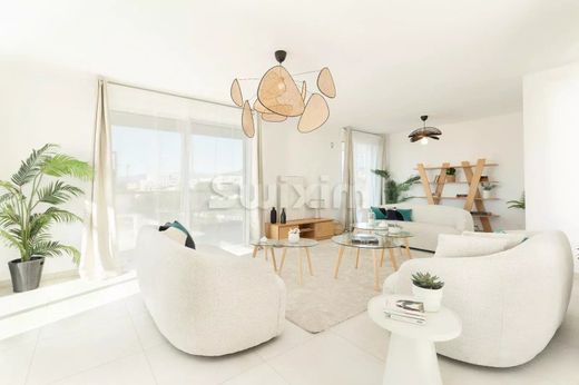 The apartment features a spacious living/kitchen area of almost 65 m², a master suite with bathroom, toilet and dressing room, two bedrooms, a master bathroom and toilet, a guest toilet in the day area, and a laundry room.