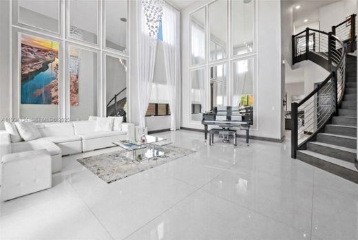 Welcome to an exceptional residence in the prestigious, guard-gated community of Satori in Miami Lakes. Situated on an oversized 9,701 SF lot in the highly desirable Presidential section, this 4-bedroom, 3-bath home offers a rare blend of elegance, scale, and resort-style living. Soaring 20-foot ceilings, impact windows and doors, and tile flooring throughout including wood-look tile upstairs, create a seamless, modern aesthetic. The thoughtfully designed layout includes a full bedroom on the ground level and an expansive primary suite with an impressive walk-in closet. Outdoors, enjoy a private retreat featuring a custom pergola with outdoor kitchen, turf yard, and extended driveway. The A/C-equipped garage adds versatility and comfort. Satori offers unmatched amenities including a clubhouse with gym and party room, kids playroom, heated pool and spa, water park, playground, and four docks on a 67-acre lake. A truly unique offering in one of Miami Lakes’ most sought-after communities.