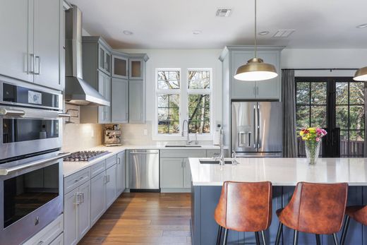 Exquisitely designed five bedroom, five and one half bath home boasts luxurious amenities throughout. Grand two story entryway welcomes you to the open floor plan living space that features a sun drenched living room which flows seamlessly into the dining room and kitchen area. Expansive gourmet kitchen features stainless steel appliances, convenient pot filler, hot water spout for sink, two dishwashers, two beverage coolers and massive walk-in butler's pantry. Spacious prep island, complete with wine fridge, countertop seating, storage cabinets and its own sink and dishwasher. Cozy up alongside the custom gas fireplace or watch the big game in the oversized family room that opens directly up to the kitchen. first floor bedroom features a full bath en-suite and can make the ideal guest room or home office. Primary bedroom retreat offers a lavish sanctuary to decompress with an oversized stand-up shower, dual sink vanity and towel warmer. Upper level laundry room provides an added ease to laundry duty. Spacious, multi-level wrap-around deck with multiple entry ways, granite for fire-pit, gas outlet for grill and wiring ready for outdoor speakers. Whole house filter & RO system for drinking water. Heated garage with electric car outlets and extra washer. Other features include built-in Kef speakers on the first floor and basement movie theater, Wifi enabled Sprinkler system, Wifi extenders for whole house, hard-wired exterior CCTV cameras and video doorbell. Stately elegance and refined craftsmanship found throughout the home.