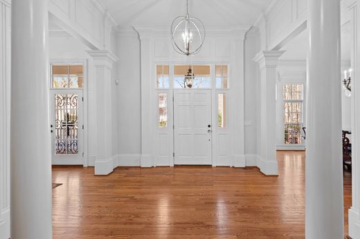 Elegant Charleston-style reproduction featuring classic period "door-to-nowhere," wrought iron detailing, and two decorative balconies. Exterior paint, brick and trim, fully pressure washed and a newer roof. New carpet, new interior paint, new water heater. Remodeled gourmet kitchen with Sub-Zero refrigerator, five-star dual-fuel range, large island, quartz countertops, Kohler sink, pot filler, Scotsman ice maker, U-Line wine fridge, and instant hot/cold filtered water. Five fireplaces, central vacuum, new polished nickel lighting, and laundry rooms on main and second floors. Oversized owner's suite with private living area and fireplace, spa bath with slipper tub, dual shower, bidet, large walk-in closet, and adjacent workout room. Updated guest suites on main and terrace levels with new tile and frameless showers. Spiral staircase to cupola-level office or retreat. Fox Theatre-inspired media room with stage, near soundproof walls, 20+ hidden speakers, and equipment room. Wine cellar for 700+ bottles. Three-car garage with lift-ready bay, large unfinished storage, spray foam attic insulation, terrace level plumbed for in-law suite, covered outdoor dining porch with fireplace and vented grill. 12' main-level ceilings, 10' upper and terrace levels. Park across the street with pool, tennis, basketball, river access, and playground. Tranquil backyard with fountain and bridge.