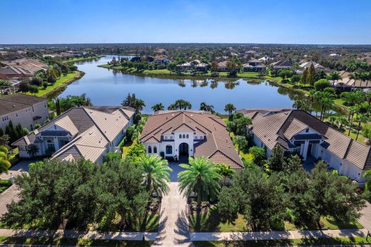 Welcome to 16218 Daysailor Trail, an exceptional estate residence set behind the gates of The Lake Club at Lakewood Ranch. Built in 2018 and meticulously maintained, this nearly 3,100-square-foot, single-level home embodies refined Florida living, offering expansive unobstructed long lake views and desired southern exposure that provides a tranquil, ever-changing natural backdrop. Positioned on a premier waterfront homesite, the property features over $57,000 in recent upgrades and a thoughtfully curated selection of upscale finishes throughout. Enter through the double glass and iron doors into a bright, timeless interior where the expansive great room impresses with high-volume ceilings accented by wood beams, rich hardwood flooring, a gas fireplace, and pocketing impact-glass sliders that seamlessly blend indoor and outdoor living. The outdoor living space is equally compelling, offering generous covered lounge and dining areas, a fully equipped outdoor kitchen, and a heated saltwater pool and spa, all overlooking private lake views designed for year-round enjoyment. At the heart of the home, the chef's kitchen is a showpiece, offering double-stacked wood cabinetry with glass-front uppers, lighted interiors and slide-out shelving. Premium appliances include a Wolf gas cooktop, wall oven and microwave, Sub-Zero built-in refrigerator, Miele dishwasher and a walk-in pantry with custom shelving. Calacatta Lazza quartz countertops, a stacked herringbone backsplash, farmhouse sink and elegant pendant lighting complete the island, which doubles as a breakfast bar and flows seamlessly into the dining area. The dining room, with corner sliding glass doors and serene water views, is an entertainer's dream. The private primary suite offers a peaceful retreat with French doors flowing to the lanai, two spacious walk-in closets with custom built-ins, and a spa-inspired bath featuring split vanities, a large walk-in shower and a soaking tub. Two additional en-suite bedrooms provide comfort and privacy for family and guests. A versatile bonus room, used as a fourth en-suite bedroom with hardwood flooring, adds flexibility to the floor plan. The den, ideal for a home office, features wood flooring, plantation shutters and pocketing glass French doors, creating a quiet space for work or relaxation. Additional highlights include professionally designed landscaping with accent lighting, Italian plumbing fixtures, plantation shutters throughout and custom window treatments, central vacuum with kitchen kick sweep, solid-core interior doors, crown molding, 7¼-inch baseboards, whole-house surge protection, a newer pool heater, recently painted exterior, Honeywell Wi-Fi thermostats, replacement of all pool screen frame bolts and a three-car garage with EV charging station. A discreet side-yard dog run with turf completes the thoughtful design. Meticulously cared for and move-in ready, this exceptional home delivers a balance of elegance, comfort and effortless luxury. The Lake Club is a gated community anchored by an impressive 20,000-square-foot clubhouse offering a collection of luxury amenities. Residents enjoy two resort-style pools, including a zero-entry pool with a splash park, poolside dining, a full-service spa and a state-of-the-art fitness center, tennis and pickleball courts with professional racquet staff cater to sports enthusiasts, and an active social calendar keeps the community connected year-round. Total tax amount includes CDD fee.